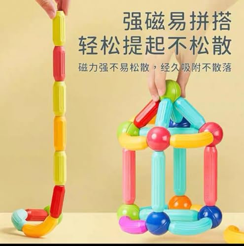 - Features: Colorful magnetic building balls and sticks. Easy to connect and disconnect. Help your children recognise basic colours and shapes, promote their imagination and creativity when stacking. Your children can build different 2D models as well as 3D buildings.