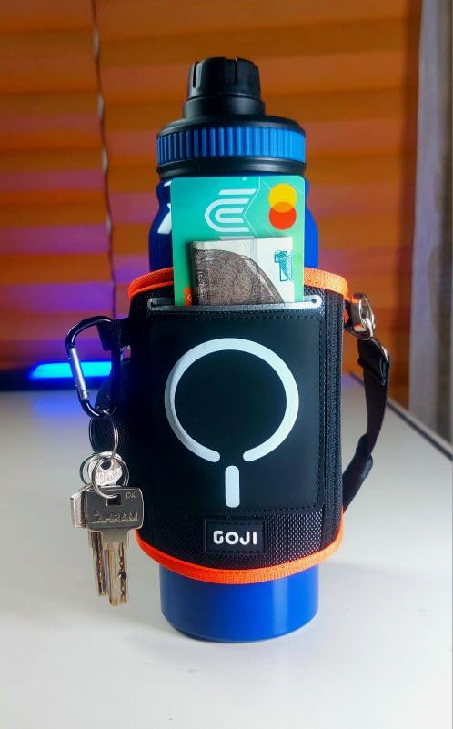 Generic - حامل زجاجة مياه مغناطيسي، يعلق مغناطيسيا على معدات التمرين السطحية المعدنية، مع جيب ملحقات للهواتف المحمولة والمفاتيح والبطاقات وسماعات الرأس