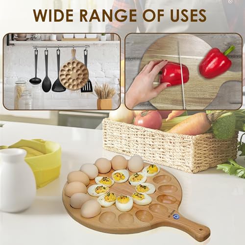 - 🎁A THOUGHTFUL GIFT CHOICE - Our wooden egg platter is a stylish table centerpiece and a convenient addition to any kitchen. Crafted to elegantly showcase a variety of appetizers, from classic pickled eggs to an assortment of hors d'oeuvres, it enhances the presentation of your dishes. Its versatile design makes it perfect for any occasion.
