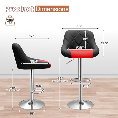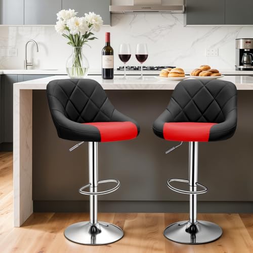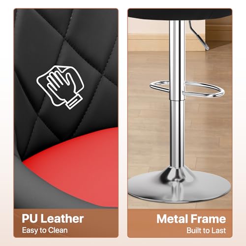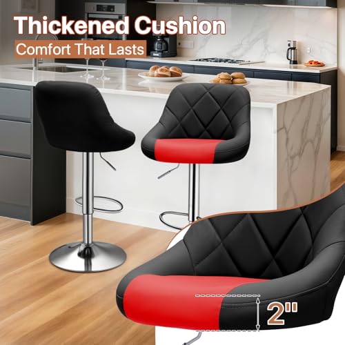 Magshion - Magshion Bar Stools Set of 2, Swivel Counter Height Bar Stools, Modern Island Chair with Back and Footrest for Kitchen Dining Room, Black/Red
