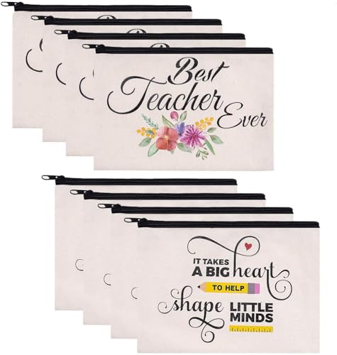 Generic - magy store 8 PCS Teacher Gifts Makeup Bags Cosmetic Travel Carrying Case Toiletry Pouch with Zipper in 2 Unique Designs, Teacher Appreciation Gifts, 9 x 6 Inch