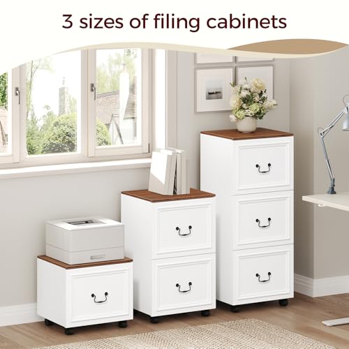 - Farmhouse Aesthetic: Our mobile file cabinet combines white with walnut finishes, accentuated by a dimensional frame and refined decorative lines that exude rustic appeal. The classic retro handles add a touch of timeless elegance that seamlessly integrates with your home decor