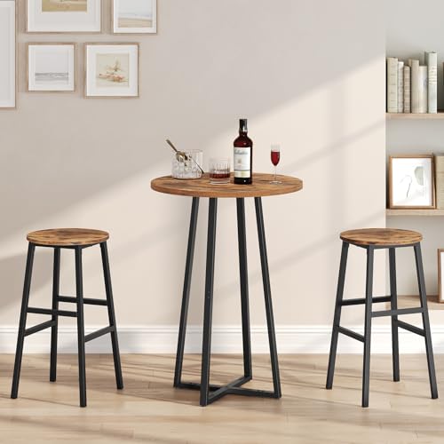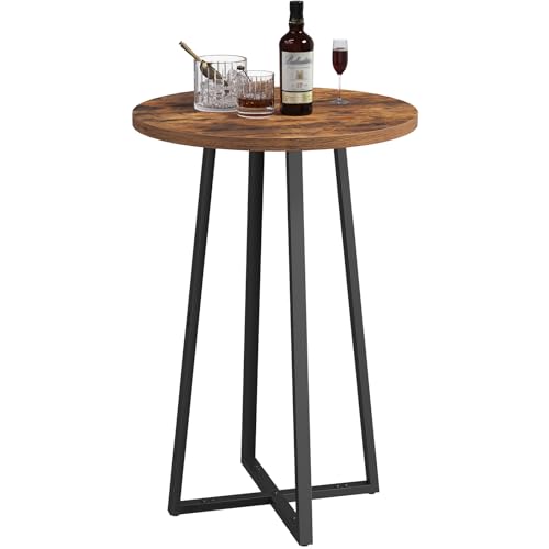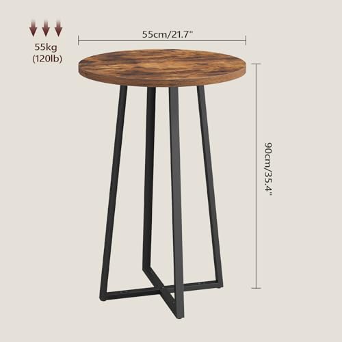MAHANCRIS - Bar Table, 35.4" Tall Pub Cocktail Table, Bar Height for Kitchen, with Cross Base, Easy to Assemble, for Bar, Pub, Bistro, Cafe, Rustic Brown and Black BTHR12601