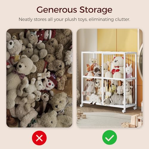 - Smooth Movement, Secure Stability: With 4 smooth plastic wheels including 2 lockable ones, this plush toy holder allows for easy movement and secure placement. Effortlessly move it around the room, collecting scattered toys and simplifying tidy-up tasks