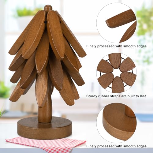 Mailirious - مجموعة حوامل خشبية للاطباق الساخنة من مايليريوس، مجموعة حوامل على شكل شجرة الكريسماس، حصيرة اطباق المطبخ، 4 حوامل خشبية + 1 حامل، قواعد اكواب شجرة، حوامل للاواني الساخنة والمقالي (خشب الجوز)