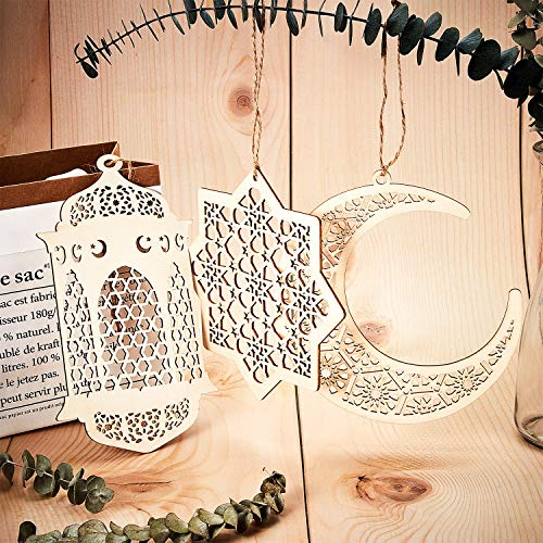 - Package includes: 3 pcs/ set wooden pendant, moon wind light star wooden Eid decoration DIY furniture decoration pendant