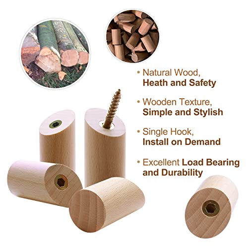 - 【Beech Wooden Hooks】The wall hooks derived from natural beech, with natural wood grain, simple and ideal for decorative wall hooks, polished surface with good workmanship, health and safety.