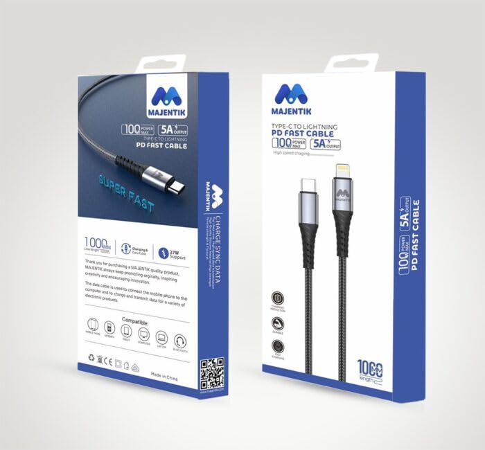 Majentik - Majentik CL013-L Fast Charging Cable 2 Meter – USB-C to iOS Connector, 27W PD, Braided Design, Data Sync Compatible with Apple Devices