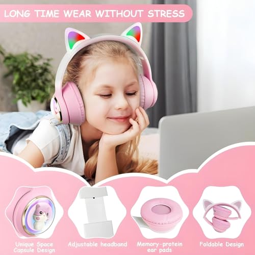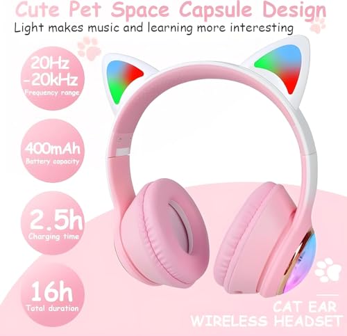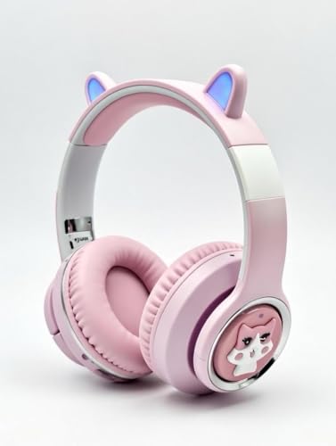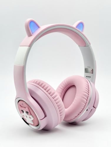 Generic - Majestic M33 pink Wireless Headphones KITTY Ear with Mic Blue Tooth Stereo Bass Helmets Children Gamer Girl Gifts PC luxury for girls and boys cat Phone GamingHeadphones with LED Lights
