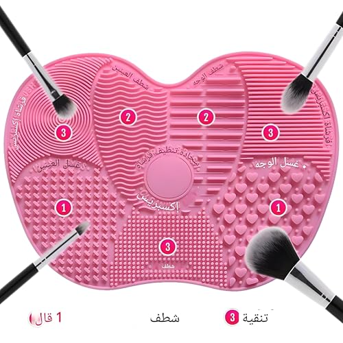 - Our versatile and effective cleaning mat features four unique cleaning surfaces specifically designed for all types of brushes. The round area is ideal for cleaning blush and blending brushes, while the striped part is designed for foundation or concealer brushes. The crisscross area is ideal for small lip brushes or eye shadow brushes, and the center area is for larger powder or bronzers. This multi-functional design makes it a must-have accessory for any makeup lover, ensuring every brush is t