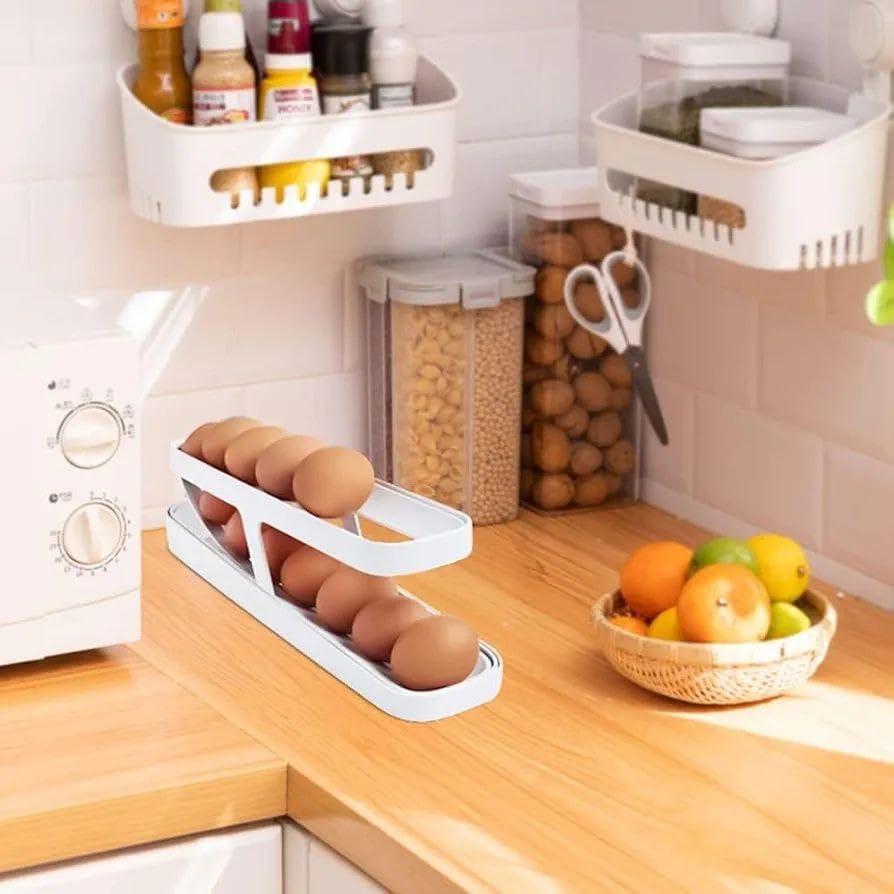 - 📦 تصميم ذكي يوفّر المساحة: بفضل شكله المكون من دورين، يساعدك المنظم على استغلال المساحات الضيقة في الثلاجة أو المطبخ بكفاءة عالية. يمكنك وضعه في أي رف دون أن يشغل مساحة كبيرة، ليمنحك ترتيبًا أفضل ويُسهل العثور على البيض بسرعة عند الحاجة.