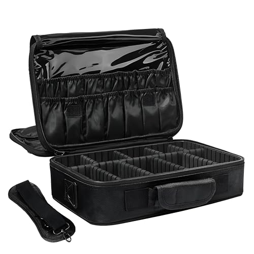 Generic - حقيبة الماكياج - 3 طبقات المحمولة المنظم مع مقسم قابل للتعديل لمستحضرات التجميل ، صندوق تخزين السفر للماء للنساء ، حامل فرشاة المهنية ، أسود