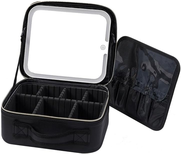 Generic - Makeup Bag - LED Makeup Mirror with 3 Modes, Portable Cosmetic Bag with Adjustable Compartments for Women and Girls, Waterproof Travel Storage Box, Waterproof and Dustproof, Multiple Colors