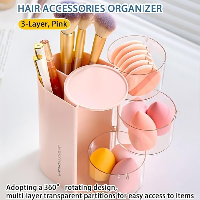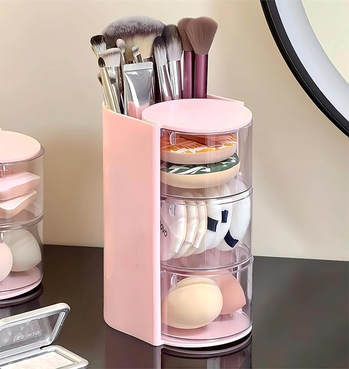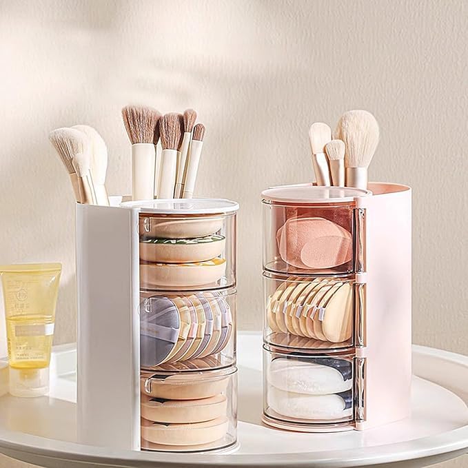 Generic - Makeup Brush Case, Puff Case, Makeup Sponge Storage, Hair Accessory Storage, Lid Included, Rotatable, Large Capacity, Dustproof Storage, Multi-functional Storage, Cotton, Sponge Puff Accessory