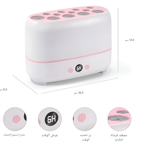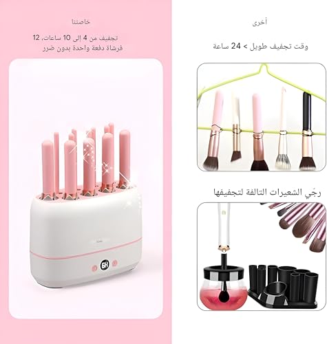 - يعمل مجفف أدوات المكياج الكهربائي الأوتوماتيكي هذا بكفاءة على تجفيف ما يصل إلى 12 فرشاة مكياج وإسفنجتين في وقت واحد، مما يوفر لك الوقت والجهد القيمين. تصميمها متعدد الوظائف يستوعب أيضًا شفرات الحلاقة والمجوهرات، مما يجعلها إضافة متعددة الاستخدامات لروتين جمالك. يضمن الحجم الصغير عدم فوضى أدوات الزينة الخاصة بك.