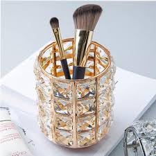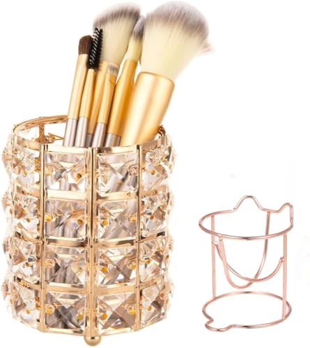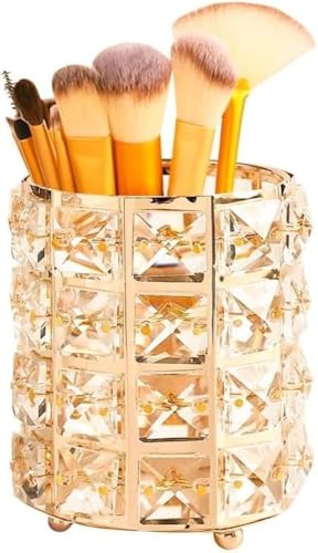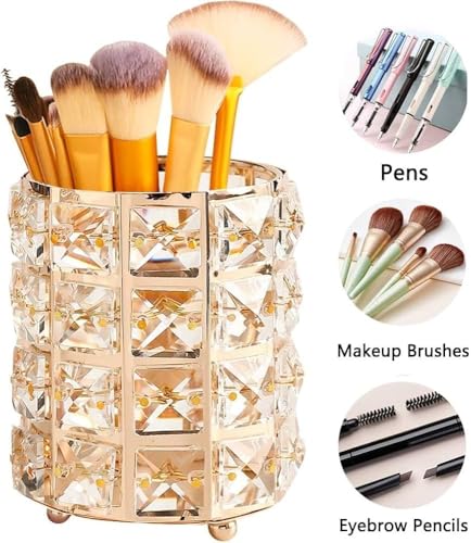 Generic - حامل منظم أدوات المكياج والفرش، تصميم كريستال ذهبي، متعدد الاستخدامات للأقلام وفرش المكياج وأقلام الحواجب