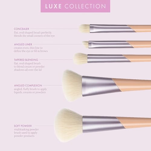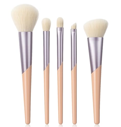 - مجموعة فرش مكياج كاملة مكونة من 5 قطع - تتضمن فرش مستحضرات تجميل أساسية مصممة لوضع مكياج الوجه والعين بما في ذلك مزج البودرة والبلش وظلال العيون.