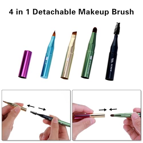 - 4-IN-1 MULTI-PURPOSE DESIGN: Complete makeup brush set includes eyebrow brush, eye shadow applicator, screw brush, and lip brush all in one compact stick for versatile makeup application