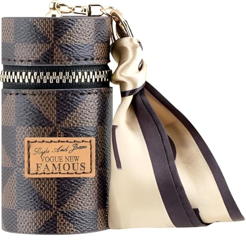 - Elegant lipstick organizer crafted from natural leather, holds up to 3 lipsticks, includes a silk scarf and keychain for fashionable daily use and travel.