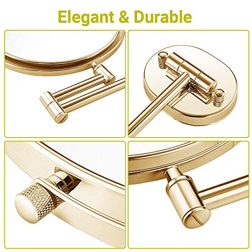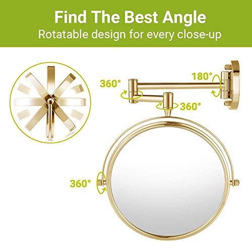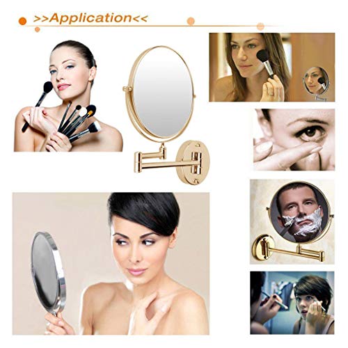 Other - مراة مكياج تثبت على الحائط 8 انش مزدوجة الجوانب قابلة للتمديد بدوران 360 درجة، مراة حمام كروم - ذهبي