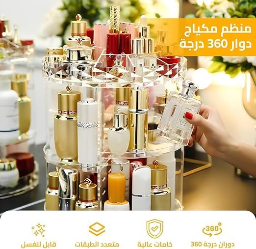- دوران 360 درجة: يسمح التصميم الدوار بسهولة الوصول إلى جميع مستحضرات التجميل والإكسسوارات الخاصة بك مع دوران بسيط، مما يجعل من السهل العثور على أغراضك واستخدامها دون متاعب.