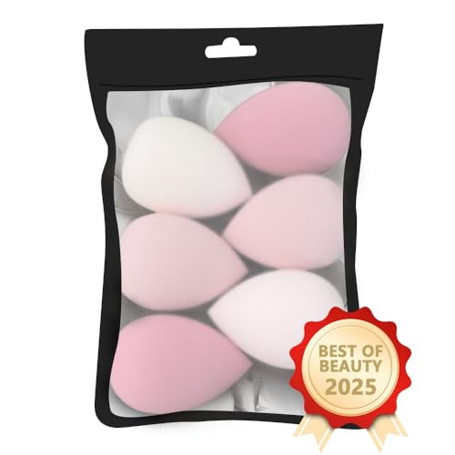 1stmall - مجموعة اسفنجات مكياج من 6 قطع بلون زهري لكريم الاساس والبودرة والسائل والكريم، اسفنجات مستحضرات تجميل ناعمة خالية من اللاتكس وقابلة لاعادة الاستخدام، اداة توزيع وجه خالية من العيوب للنساء