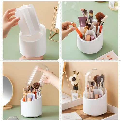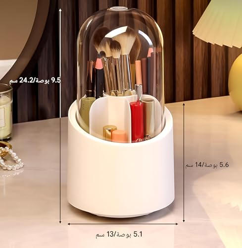 Generic - منظم أدوات المكياج - كوب أكريليك قابل للدوران مع غطاء، ارتفاع 24 سم لتخزين مريح للفرش والمكياج