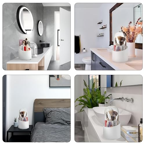 - يتميز حامل فرش المكياج الأكريليك هذا بتصميم كوب شفاف مع غطاء واقي، يحمي الفرش من الغبار وقطرات الماء، وهو مفيد بشكل خاص في بيئات الحمام. تتيح الرؤية الواضحة للمستخدمين تحديد موقع فرشهم على الفور دون تفتيش.