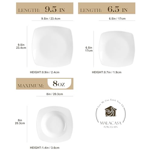 - WHAT DINNERWARE YOU GET- MALACASA grey white dish set for 12 includes 9.5'' dinner plates, 6.5'' dessert plates, and 8 OZ soup plates; The porcelain dinnerware sets are perfect for various dining environments and create a delightful dining experience for all your families members.