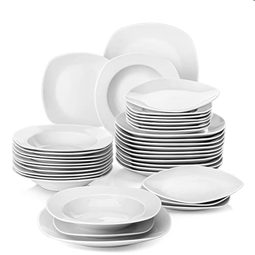 MALACASA - MALACASA Plates and Bowls Sets, 36-Piece Gray White Porcelain Dinnerware Set without Mugs, Square Dinner Sets with Dinner Plates, Dessert Plates and Soup Plates, Dinnerware Sets for 12, Series Julia