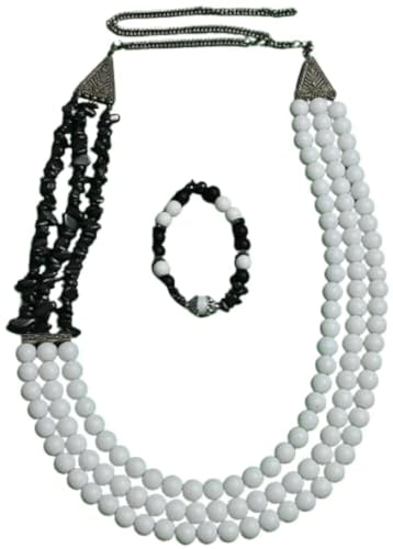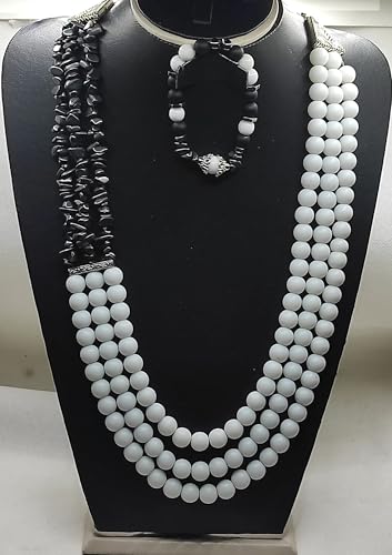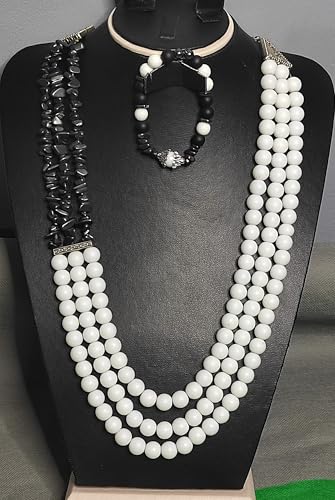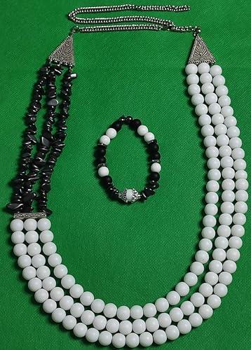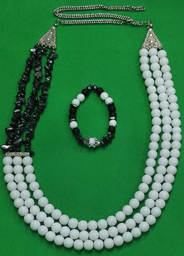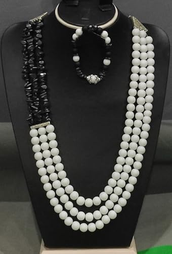 Generic - Malika Accessories - Onyx & Quartz Necklace & Bracelet Set - White & Black in Grey