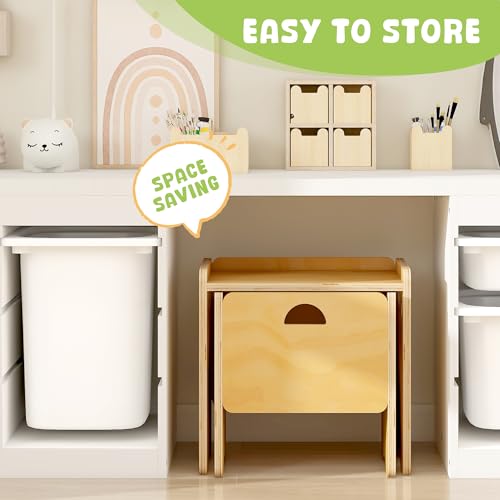 - EDUCATIONAL AND AUTONOMOUS – Inspired by Montessori principles, our table and chair set encourages children to take charge early, helping to develop fine motor skills, coordination, and independence through mealtime and play activities