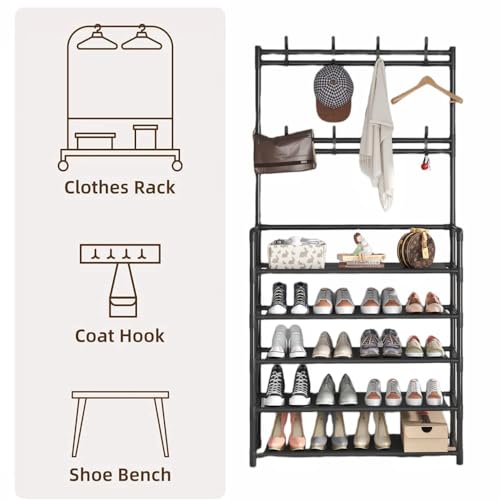 - 🥾【تصميم 3 في 1】يجمع هذا المنتج بشكل مثالي بين الشماعات ورفوف التخزين ومقاعد الأحذية لتلبية احتياجات التخزين اليومية. يوفر الذراع بـ8 خطافات مساحة لتعليق المفاتيح والقبعات والشنط؛ يمكن استخدام الرف المكون من 5 أدوار لتخزين الأحذية وغيرها من العناصر. يوفر مساحة كبيرة في منزلك، زوايا للمناطق التي يصعب الوصول إليها، ويبقي المدخل مرتبًا