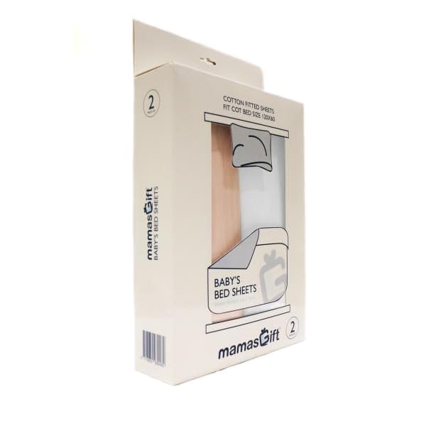 Mamas Gift - mamas gift 100% Cotton Fitted Crib Sheets 2-Pack - 120x60 cm – White - Soft, Breathable & Snug Fit for Baby Cot Bed - Elastic All Around, Machine Washable - Fits Up to 3" Mattress