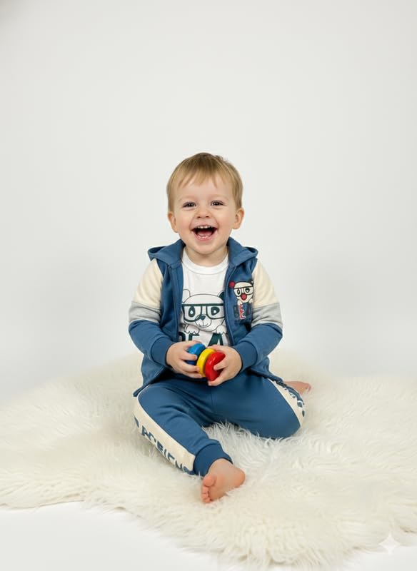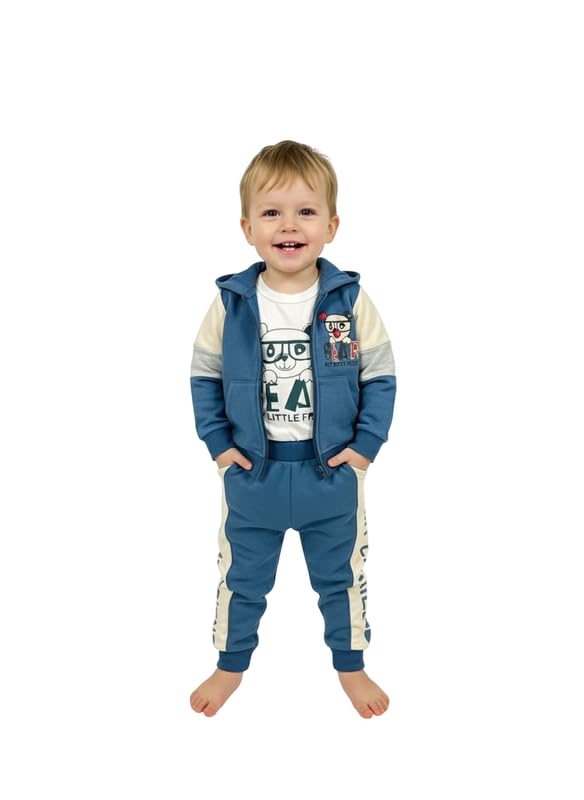 Mamy Care - 3-piece children's pajama set t-shirt and pants and Jacket For Girl -Blue Beige