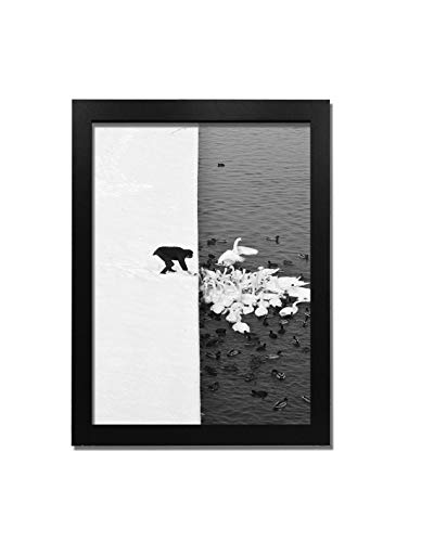 Al Adham - MAN FEEDING DUCKS - BLACK - Wooden Frame with Glass - Printed Poster Tableau wall art BZL-141-24322-BK
