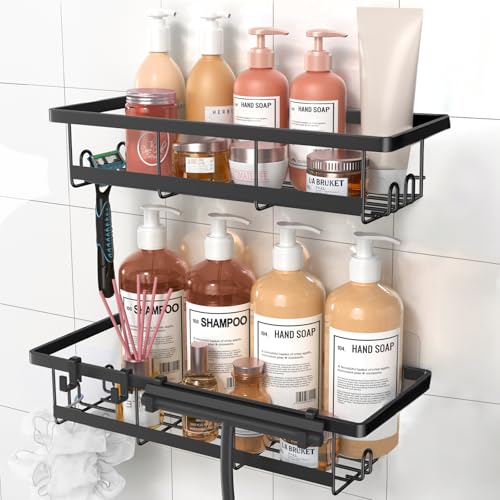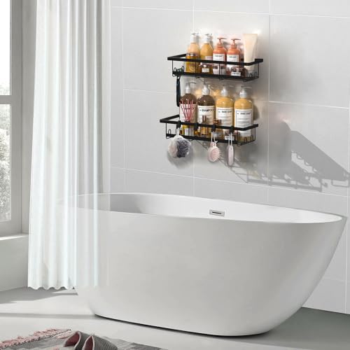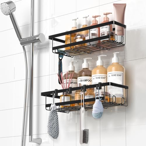 - 【What is included】2 x Shower Caddies with Hooks, 3 x Transparent Adhesive Stickers, and 4 x Plastic Hooks, excellent customer service. Ample storage space for your shampoo, conditioner, body wash, razor, shower wiper and other shower essentials.
