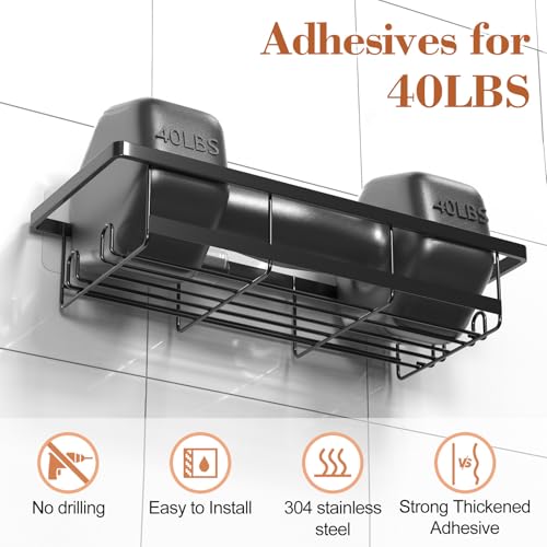 - 【Strong Adhesive Shower Organizer】The upgraded adhesive shower caddy offers exceptional stability. With a larger adhesive surface area and stronger adhesive strength, stick on shower shelves can bear up to 40 pounds of weight. Rest assured, your shower rack will stay securely attached to the wall.If you would like to remove the adhesive, please use a hairdryer to heat it, then it will be easy to tear off.