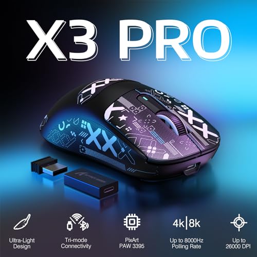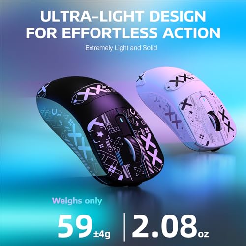 MANBASNAKE - MANBASNAKE Wireless Gaming Mouse + Griptape 4K/8K Polling, 59g Ultra-Lightweight Ergonomic Computer Mouse, Triple Modes PAW3395 26K DPI Optical Sensor, Programmable Buttons, 80M Clicks for PC/Laptop