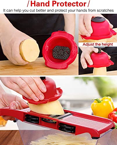 - ??¡¾6 In 1 Mandoline Slicer¡¿ Mandolin Slicer Comes With 6 Interchangeable Blades, 1 Food Container Base, 1 Peeler And A Finger Guard. With This Vegetable Cutter, You Can Meet All Of Your Needs Of Cutting, Slicing, Chopping And Save A Lot Of Time