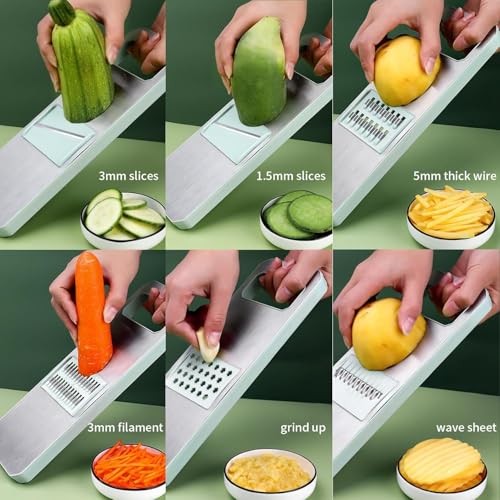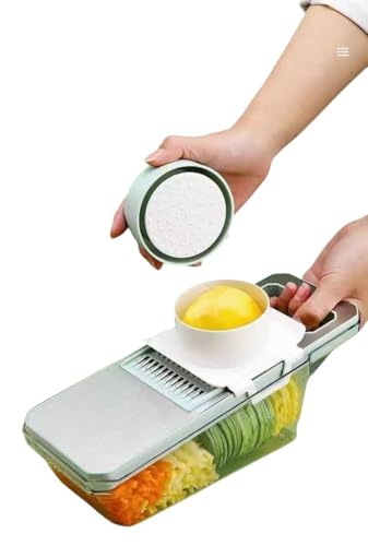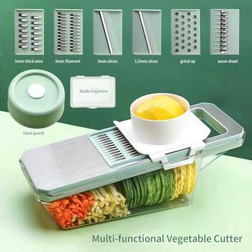 Generic - قطاعة شرائح ماندولين مع حاوية، قطاعة خضراوات قابلة للتعديل ومبشرة، أداة مطبخ من الفولاذ المقاوم للصدأ