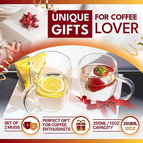 - UNIQUE GIFTS FOR COFFEE LOVER IN YOUR LIFE: 2 piece for 350ml / 12oz of amazing coffee, milk, espresso, latte, hot and cold, or just about any drink you can think of, these ultra light, clear double-wall mugs are the present you just can’t wait to give or keep for yourself!