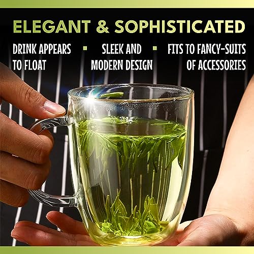 - ELEGANT & SOPHISTICATED: The double wall glass will make your drink appear to be floating in mid air. Elevate your morning tea or coffee with these sleek, modern clear coffee mugs befitting a high end suit accessories and tie restaurant.