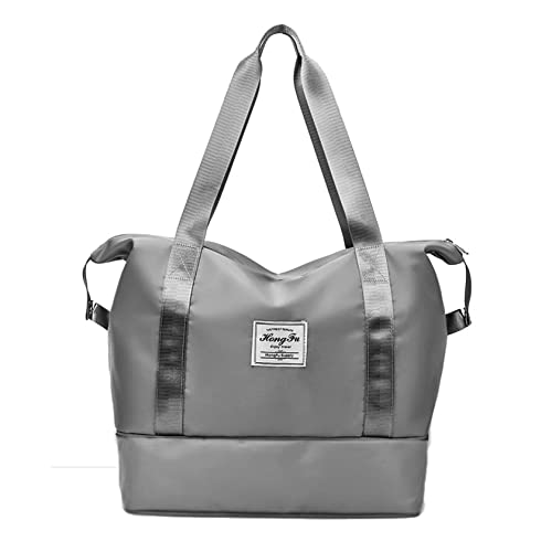 Manfnee - شنطة يد كبيرة توت دفل رياضية قابلة للتوسيع مع جيب رطب للنساء مناسبة لصالة الالعاب الرياضية والسفر وعطلة نهاية الاسبوع من مانفني, Medium، نايلون، رمادي