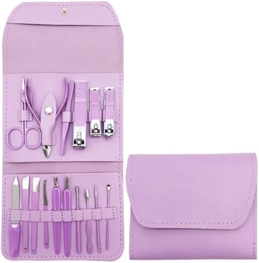 Nutrascience - مجموعة العناية بالاظافر مكونة من 16 قطعة من ادوات العناية بالاظافر الاحترافية من الستانلس ستيل للرجال والنساء مع شنطة تخزين للسفر للعناية بالاظافر وتشكيل وتشذيب الاظافر (ارجواني)