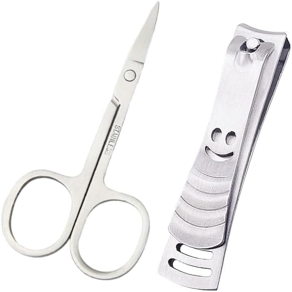 Nutrascience - مجموعة مانيكير مكونة من قطعتين من الستانلس ستيل للنساء والرجال مجموعة ادوات العناية بالاظافر للسفر (فضي)