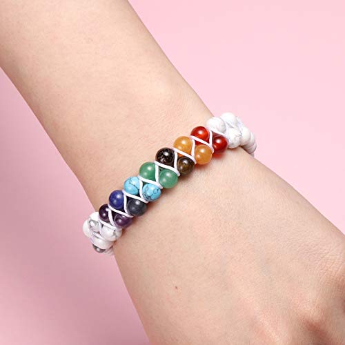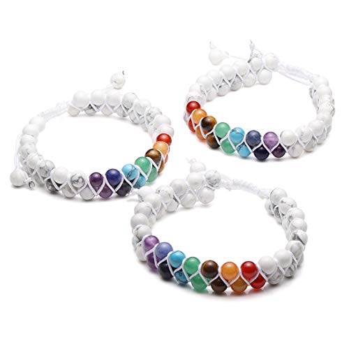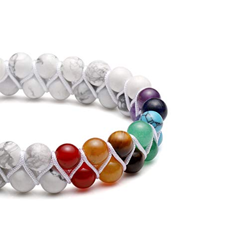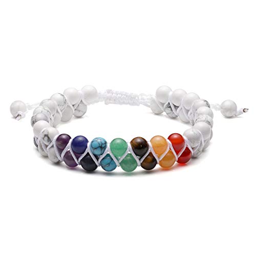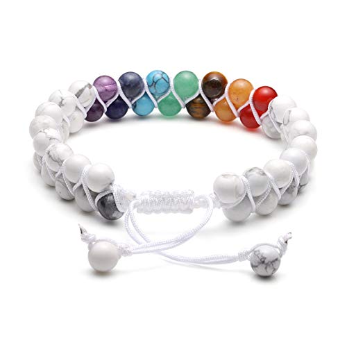 - Crystal Bracelet Design:Chakra crystal with white howlite bead braided bracelet, 2 layers unique design. It can diffuse the oil on the bracelet, and the perfume would always be on your body. Adjustable crystal bracelet jewellery suitable for both men and women.