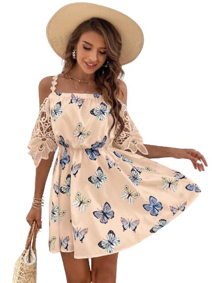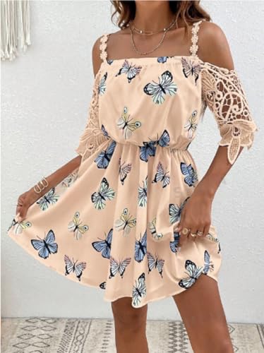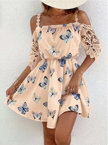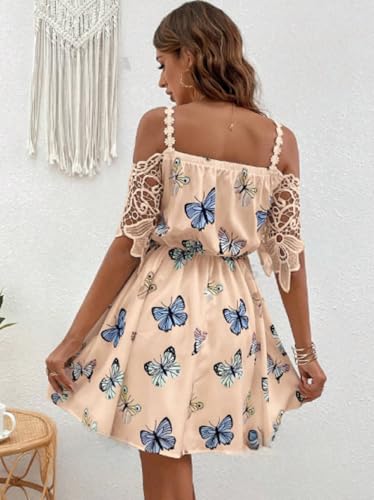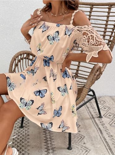 Generic - MANIKAN Off-Shoulder Butterfly Print Dress, Beige, one size
