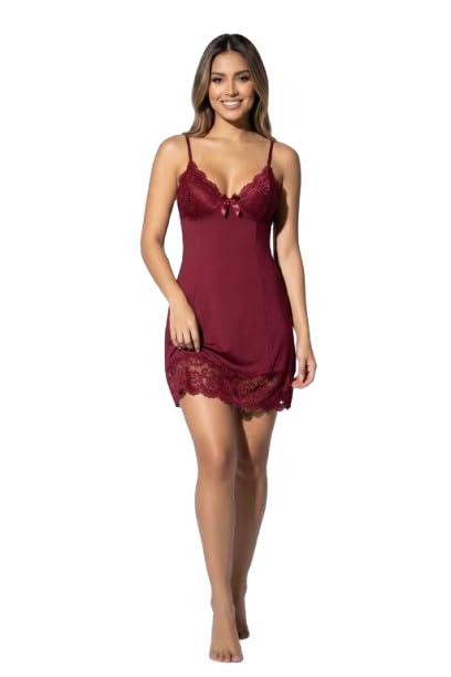 Generic - MANIKAN Women's Chemise Nightgown with Adjustable Straps, Burgundy Sleepwear Lingerie