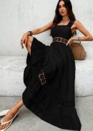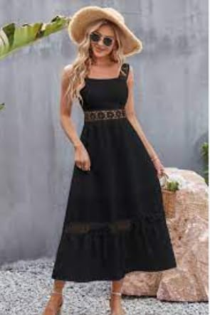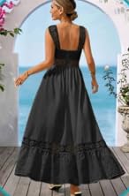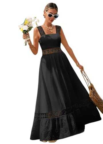 Generic - MANIKAN Women's Dress Lace Maxi Dress Square Neck Sleeveless Summer Dress with Embroidered Details